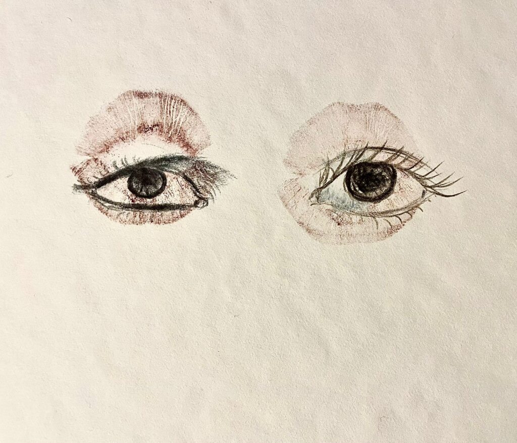 Kâğıt üzerine kurşun kalem ve ruj