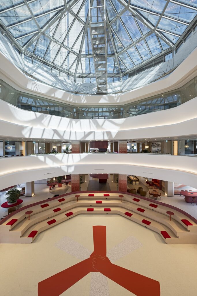 Toplam 35.000 m²’lik alanda lobi, ofisler, yönetici katları, etkinlik, yeme-içme ve sosyal alanları kapsayan 33,5 aylık titiz bir çalışma yürütüldü. Açık ofisler, sanatla zenginleştirilmiş ortam ve teknoloji entegrasyonu ile verimlilik ve yaratıcılık artırıldı.