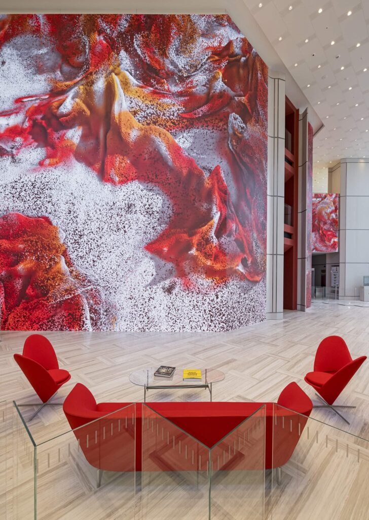 Sanat, bu dönüşümün merkezinde yer alıyor. Binada Akbank’ın sanat koleksiyonundan yaklaşık 200 eser sergileniyor. Tower 1’in girişinde ziyaretçileri, Refik Anadol’un 220 m²’lik kalıcı eseri karşılıyor. Meditatif ve çoklu duyusal bir deneyim sunan bu çalışma; canlı pigmentler, soyut desenler ve şekiller aracılığıyla doğa ile teknolojiyi buluşturuyor. Eserin veri kümesi, İstanbul hava durumu verileri ile dünyanın farklı mercan ekosistemlerinden toplanan görselleri içeriyor. Bu veriler, doğa ve tarihin izlerini birleştiren bir yapay zekâ modelinin eğitilmesinde kullanılıyor. Ortaya çıkan bu füzyon, İstanbul’un sularla çevrili dokusunu ve kentin dinamik ritmini temsil ediyor.