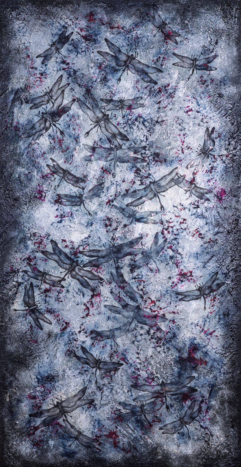 “İsimsiz”, tuval üzerine karışık teknik, 240×125 cm., 2024.