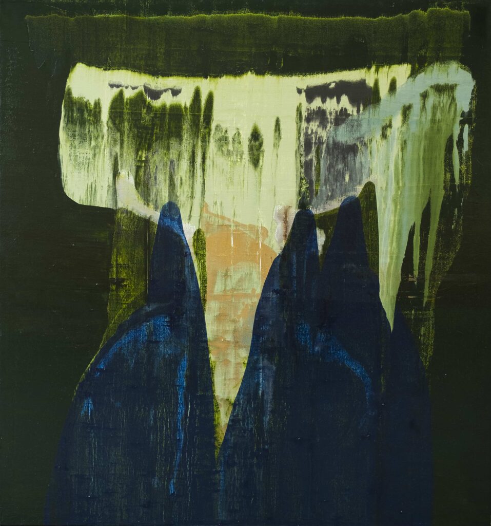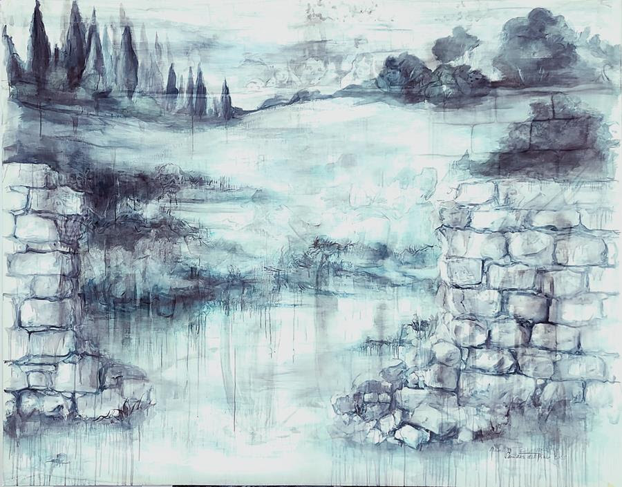 En en cerro de las campanas Queretaro II from the series Remainings, tuval üzerine yağlı boya ve şeffaf kumaş