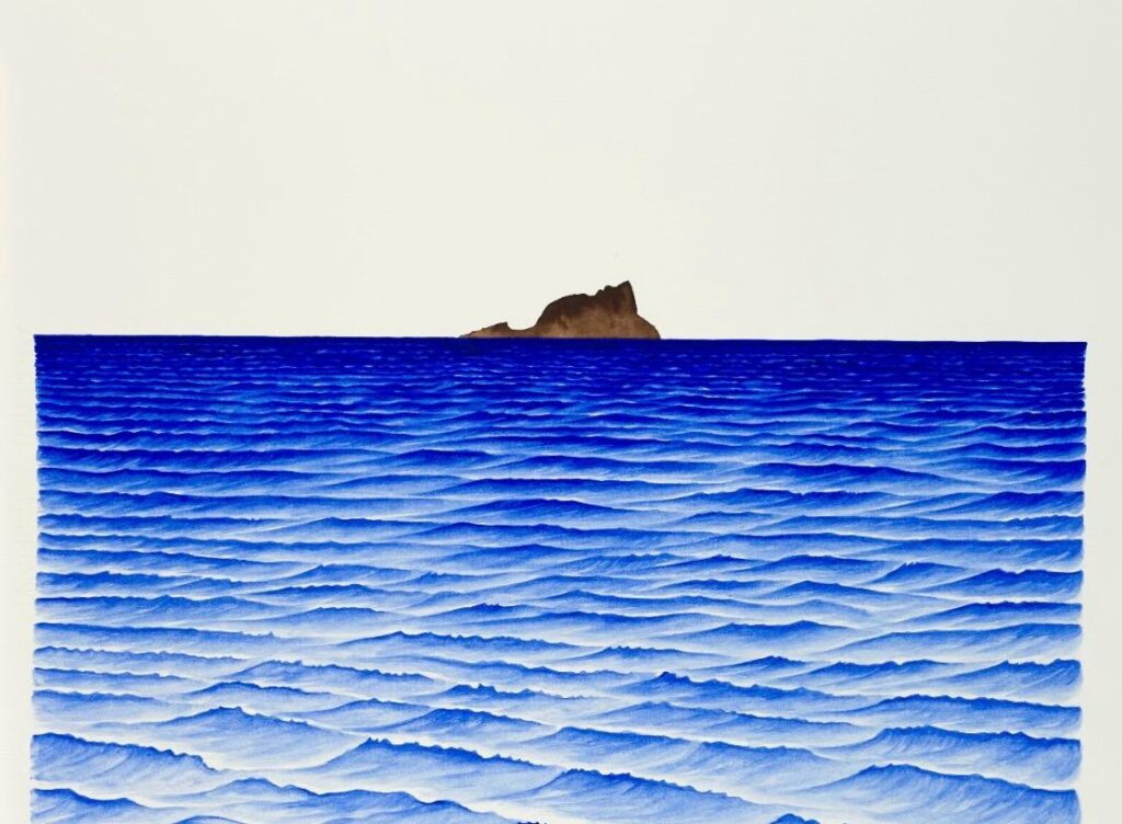Sergi, resim, video ve mekâna özgü yerleştirmelerle doğanın seslerini ve titreşimlerini izleyiciye deneyimlettiriyor. Aksoy, denizlerin dalgalı yüzeyi ve dağların kütlesi gibi unsurları arkeolojik katmanlar ve duyumsal hafıza alanları olarak sunuyor.