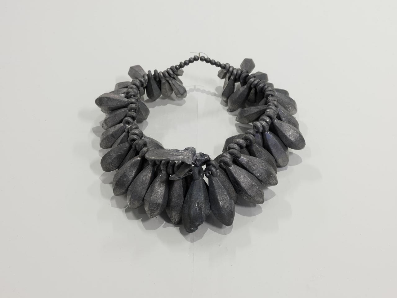 Y.P.: Kurşun zehirli bir madde; bedene yavaşça sızıyor, fark ettirmeden etkisini bırakıyor. Aile içinde, sevgililikte, dostlukta, nerede bağımlı bir ilişki varsa, orada da bir ağırlık var. İşin isminde olduğu gibi, “Hepsi senin iyiliğin için bitanem.” Sevgi kılığında söylenen, üstten, koruyucu görünen ama aslında denetleyen, küçülten bir ses tonu hayal ediyorum eşlikçi olarak. İktidar, iyi ya da kötü niyetle beslenen bir şey ve bu kurşun kolye, onun simgesi gibi. Yavaş yavaş içimize işleyen ama taşımaya devam ettiğimiz bir travma. Kolyeye bakınca, sanki bir yadigâr, değerli bir gerdanlık gibi duruyor ama bir yandan kopartamadığımız bir pranga; senin de hayal ettiğin gibi tüm ağırlığıyla sanki boynumuza taktığımızı hissettiriyor.