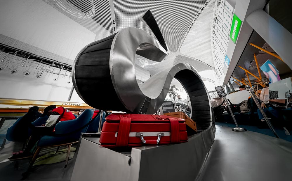 Zaten o heykelin bir amacı da şuydu: Konveyörü bozdum. Ama bozarken de kafamda çok fazla valiz koyup, yukarıya, havalimanının tepesine doğru valizleri özgürlüğüne kavuşturmak vardı. Sonra vazgeçtim. Dedim ki bir iki valiz koyayım. Heykeli konumlandırdığımız yer, insanların sabaha kadar dinlendikleri, uyudukları, yattıkları, oturdukları bir yer. Şimdi bana fotoğraflar geliyor; insanlar konveyörün üzerine kendi poşetlerini, çantalarını, valizlerini koyuyorlar. Aslında yapılan iş her gün başka bir heykele dönüşüyor, başka bir renge bürünüyor. Biraz karşılıklı bir şey oldu bu. Yolcularla beraber, iki tarafın da aidiyet duyduğu bir iş. En azından ben öyle hissediyorum.