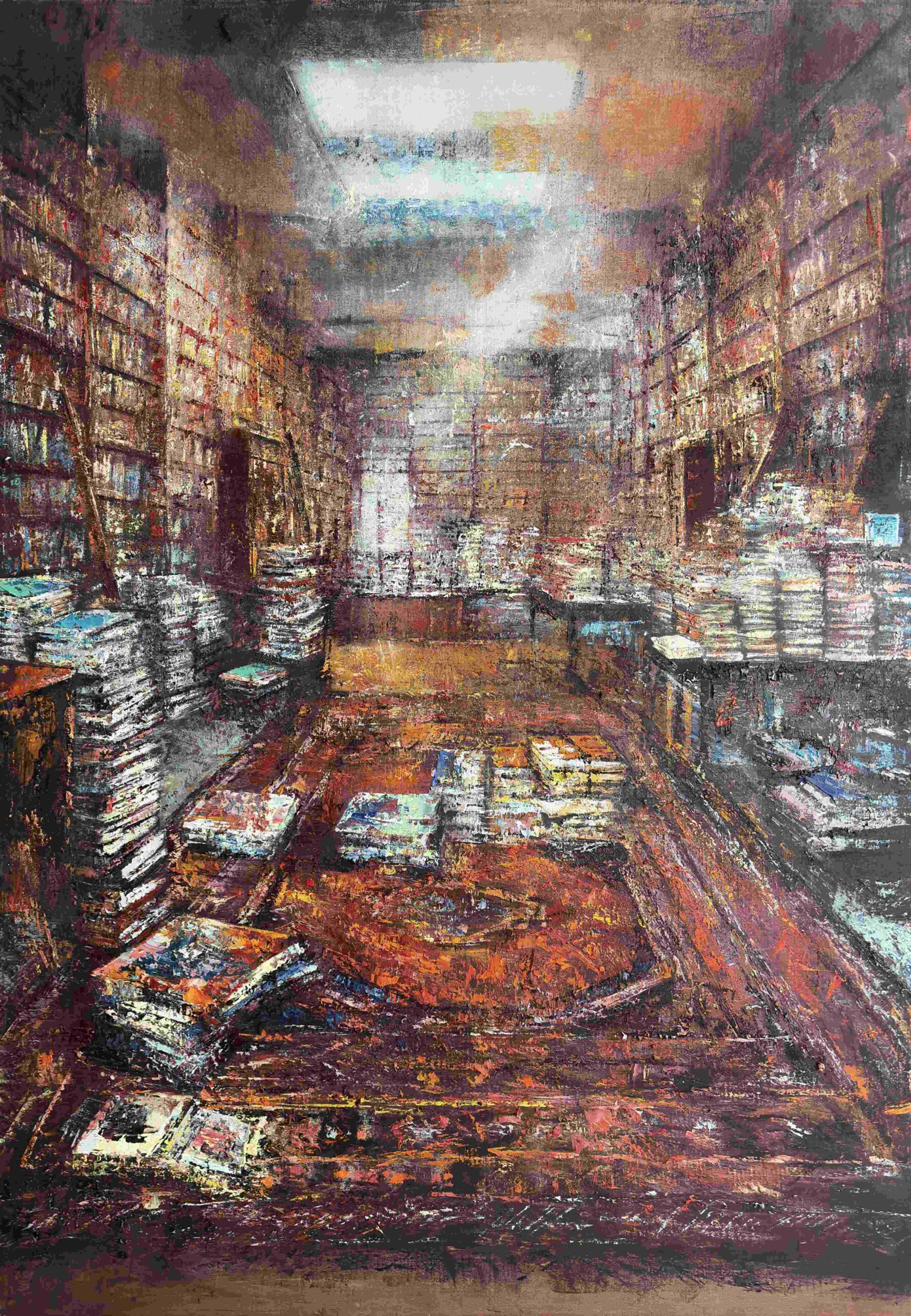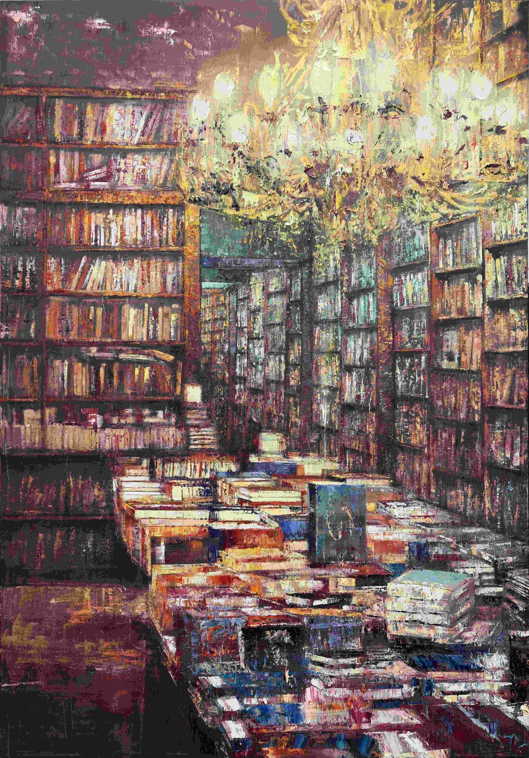 Küratör Marcus Graf’ın belirttiği gibi Giannoni’nin kütüphaneleri yalnızca birer iç mekân tasviri değil; bilgi, zaman ve hafıza üzerine düşünsel bir yapı olarak okunmalı. Dijital çağda bilginin hızla dolaşıma girdiği, ancak aynı hızla yüzeyselleştiği bir dönemde sanatçı, sessiz ve yoğun resimsel yüzeyler aracılığıyla bir karşı-mekân üretir. Resimlerinde fırça yerine spatula ile uygulanan kalın yağlı boya katmanları, yakından bakıldığında dağılmış gibi görünen imgeleri izleyiciden uzaklaştığında bütünsel bir mekânsal kompozisyona dönüştürüyor. Bu yaklaşım, resmin yalnızca temsil eden değil, kendi maddeselliği üzerine düşünen bir yapı olduğunu hatırlatıyor.