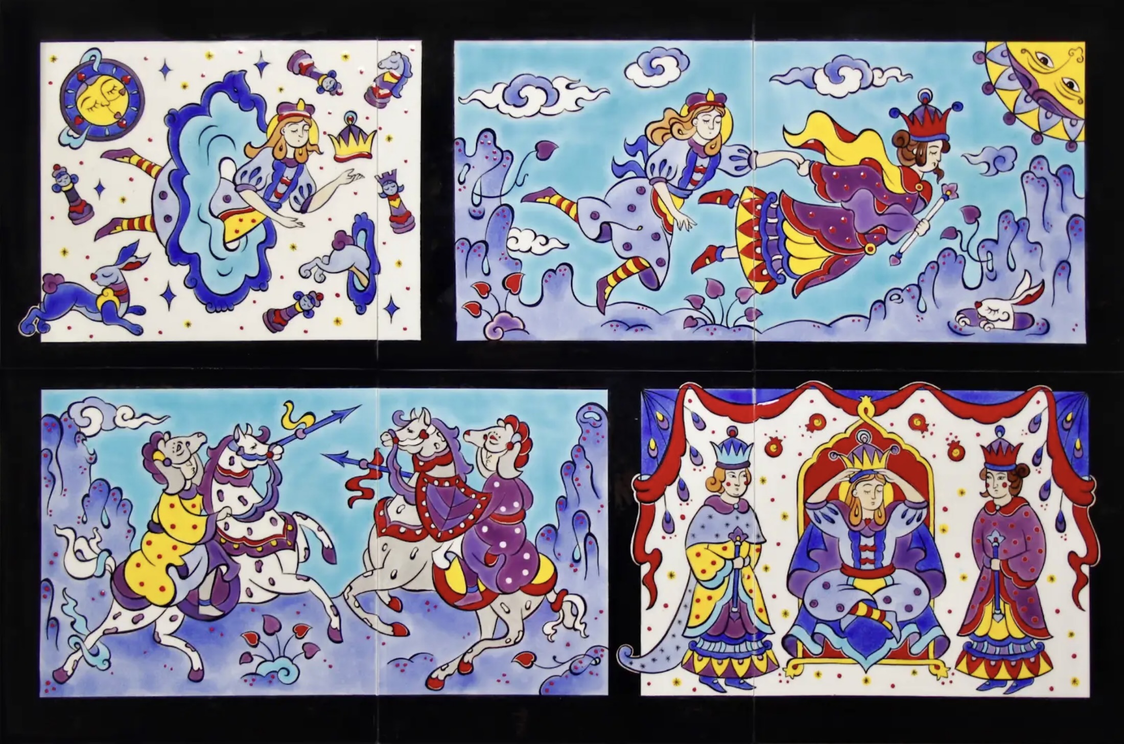 Bengisu Kaya, Alice Aynanın İçinden (mini seri II), 40x60cm, sıraltı çini pano.