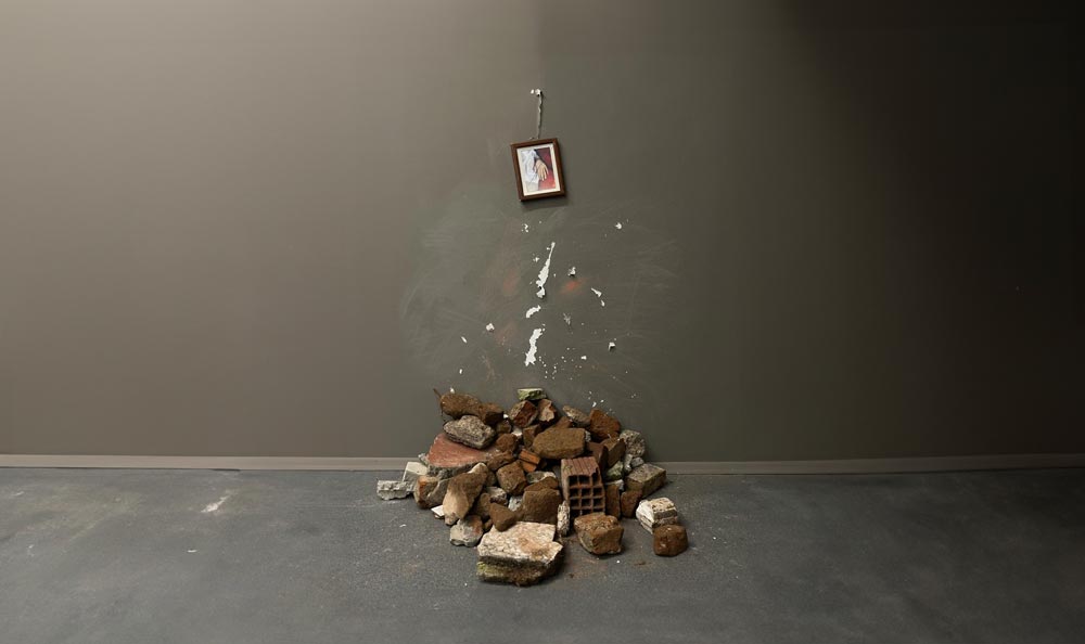 Antakyalı sanatçı Ekin Keser’in 2023 tarihli enstalasyonu Artık dokunduğunda ağlıyorum., depremin ardından geriye kalanlara dokunan bir iş. Değişken boyut ve ağırlıklara sahip enstalasyon, çerçeveli bir fotoğraf, bir çivi ve depremden kalan molozlardan oluşuyor. Keser, kendini ve işinin hikâyesini şu cümlelerle anlatmaya başlıyor: