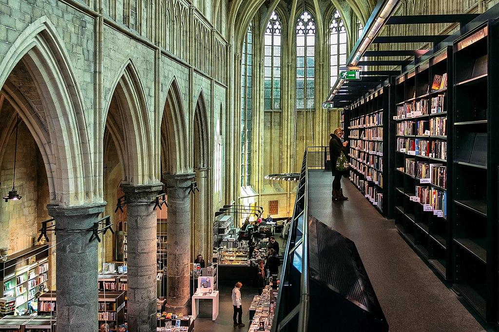 13. yüzyıldan kalma görkemli bir Dominiken kilisesinin kalbinde yer alan Bookstore Dominicanen, yalnızca bir kitapçı değil, gotik mimarinin gölgesinde kurulmuş bir edebiyat mabedi. Yüzyıllar boyunca ahırdan konser salonuna, otomobil galerisinden çocuk karnavalına kadar pek çok işlev üstlenen bu tarihi yapı, 2006 yılında raflarla yeniden hayat buldu. Jan Vassens’in 17. yüzyıla tarihlenen tavan freskleri ve 1337 tarihli, Avrupa’daki en eski Thomas Aquinas betimiyle süslenen kilise, bugün hem bir sanat hazinesi hem de kitap tutkunları için büyüleyici bir mekân sunuyor. Asimetrik yerleştirilmiş çelik kitap kuleleri arasında yükselirken, geçmişin izleriyle geleceğin hikâyelerine dokunmak mümkün.