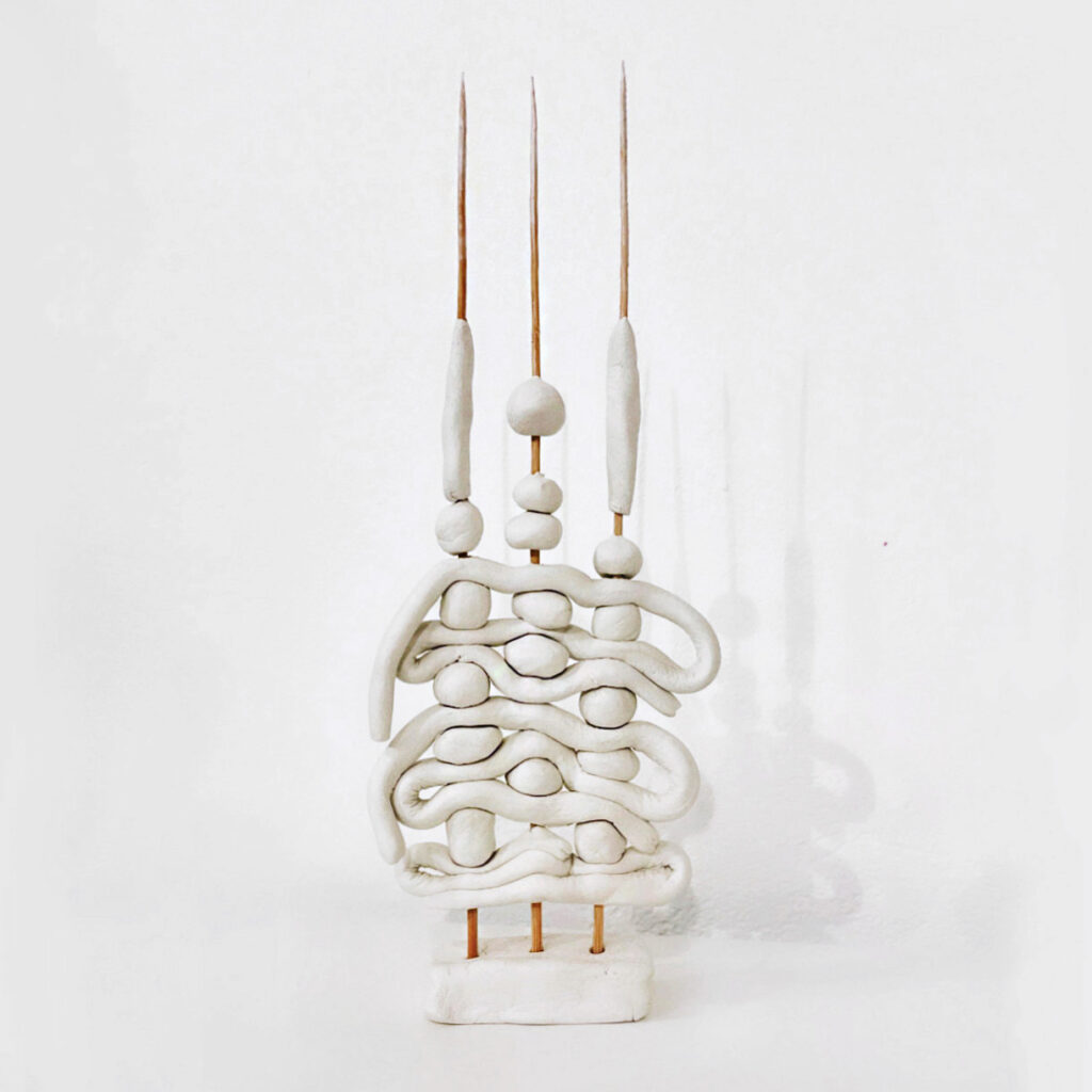 Sanatsal pratiği, mikroorganizmalardan minerallere tüm varlıkları kapsayan radikal bir çoğulculuk anlayışını, yaşamın içinde ve ötesinde bir adalet arayışıyla birleştiren Deniz Üster, Tutuşma ve Kavuşma: Biz’in Nehri başlıklı sergisinde yaşamın kökenleriyle kolektif varoluşun evrimini araştırıyor. Sergide heykel ve desenlerden oluşan eserler, birey merkezli rekabet anlayışına karşı, işbirliği ve özveriye dayalı kolektif yaşam biçimlerini öne çıkarıyor.