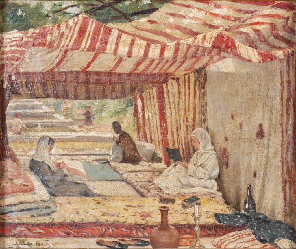 He has a statement that, in my opinion, represents a turning point in his art: ‘Thinking that portrait paintings would not find buyers, I turned toward landscape painting.’ Why portrait paintings? Because at that time there was a certain distance within Ottoman society toward figurative painting. Therefore Halil Paşa turns toward landscape painting, and we come to know him especially through his open-air landscapes. Yet he never completely abandons the figure; at the beginning he even uses it on a monumental scale, like Osman Hamdi Bey, which is actually a feature not very common among his contemporaries. But over time we see him move toward Impressionism. (…)