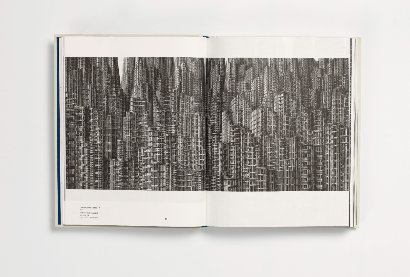 Sibel Bozdoğan’s text Nightmare Cities: Ahmet Doğu İpek’s Dystopian Construction Imaginaries centers on the artist’s “Construction Regime” series and architecture-related works, while Shumon Basar’s essay The New Stone Age Never Ends explores series such as Aşı, Tamir, Lapis Lazuli (Aşı), Spolia, and Construction Regime alongside his installations.