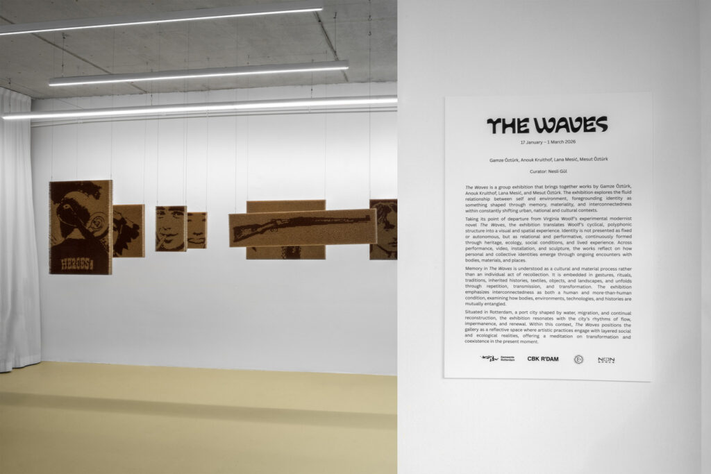 The Waves curated by Nesli Gül, on view at Contour Gallery Rotterdam from 17 January to 1 March 2026. Featuring works by Gamze Öztürk, Anouk Kruithof, Lana Mesić and Mesut Öztürk, the exhibition examines the shifting connection between the self and its surroundings, addressing themes of identity, memory and interdependence within a constantly changing urban and cultural context. Inspired by Wirgina Woolf’s modernist novel The Waves, the exhibition translates Woolf’s lyrical and cyclical narrative approach into a visual and spatial conversation. Curator Nesli Gül answered questions about The Waves.