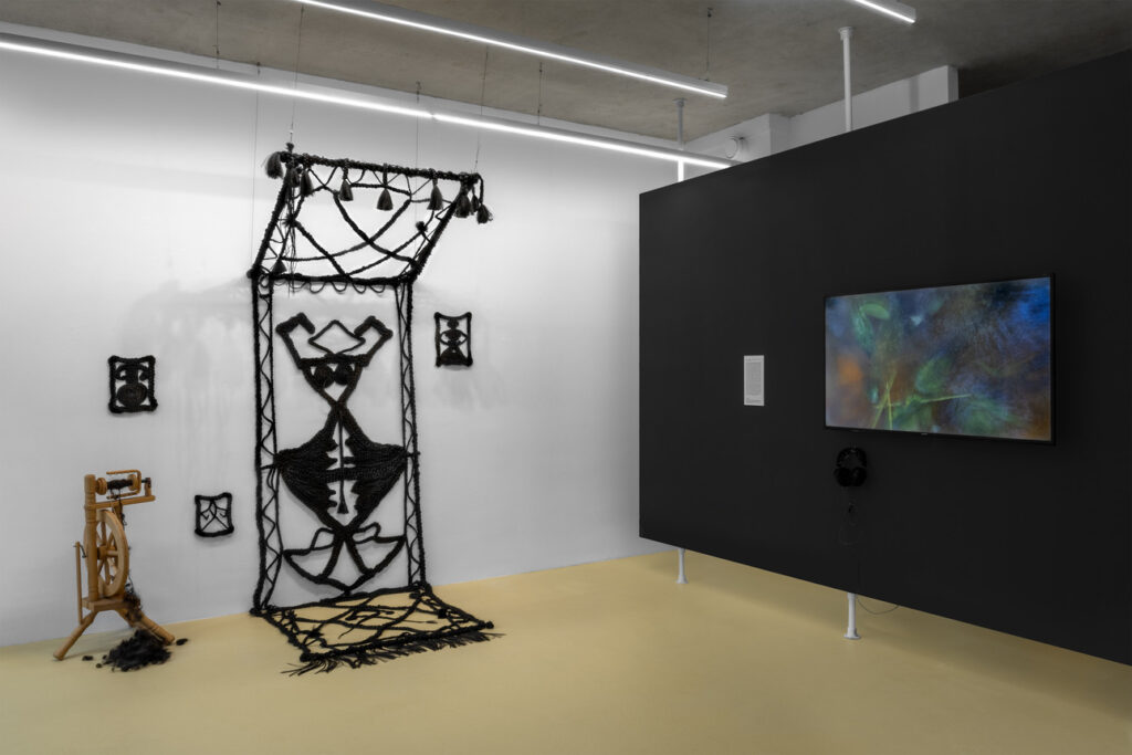 N.G.: Rather than illustrating The Waves, I translated its sensibility into a visual and spatial experience which means Woolf’s writing moves in cycles, voices overlapping, rising and receding, so the exhibition is conceived as rhythmic and non-linear. The works are positioned to create dialogue and resonance across the space, allowing themes of identity, memory, ecology, and coexistence to flow into one another. There is no fixed center or singular viewpoint; instead, visitors move through shifting intensities, pauses, and encounters. In this way, the exhibition mirrors ‘self’ as relational and in constant becoming, shaped by others, by environment, and by time. A clear example is Gamze Öztürk’s Hands-on-Hips. Emerging through a durational performance and remaining as an installation, the work unfolds through repetition, bodily labor, and shared time. The woven carpet, made from braided hair, functions as carrying gestures, memories, and inherited cultural codes. Like Woolf’s cyclical narrative, the work does not reach a conclusion but accumulates meaning through rhythm and return. Positioned within the exhibition, Hands-on-Hips activates the space as a site of encounter, where body and material, past and present, individual and collective continuously fold into one another. Identity is not presented as stable, but as a process of becoming, bodies dissolve into traditions and rituals, hair turns into both material and memory, and boundaries blur.  Identity is felt as fluid, relational, performative and deeply entangled with environment and culture. Within the exhibition, the work does not stand alone, but resonates with the surrounding works and with the viewer’s movement through the space.