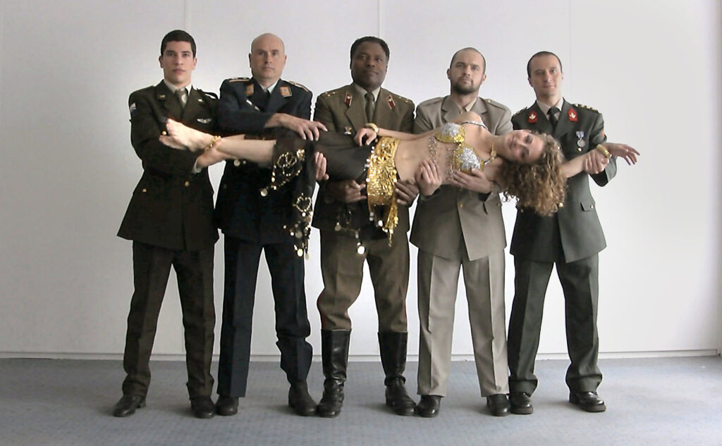 The exhibition examines the struggles of people caught between two homelands to exist in a different society, focusing on the axes of assimilation-alienation, othering, and attempts to be recognized through stereotypes.