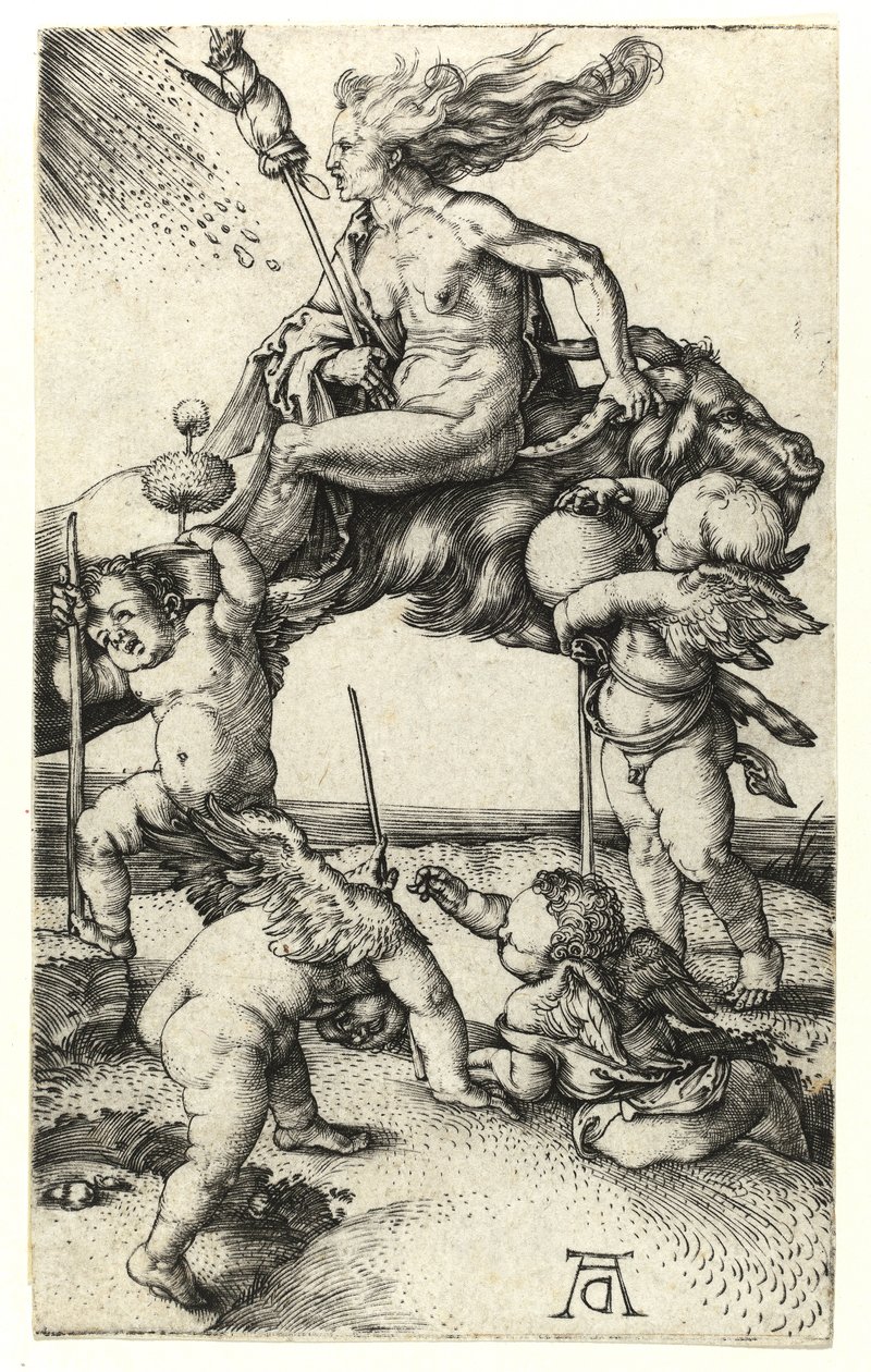 In art history, the witch figure becomes visible from the Renaissance onward. German printmaker Albrecht Dürer’s famous early-1500s engraving often titled “Witch Riding Backwards on a Goat” is widely seen as laying down the template for later witch imagery. In it, Dürer depicts an old, ugly, long and hooked nosed, naked woman riding a goat which is a symbol of the devil backwards, with a broom in her hand and fallen angelic figures at her feet. Despite facing into the wind, not a single strand of her hair seems disturbed, making her appear powerful since its against humanity. With the Dürer’s work classic witch stereotype becomes a thing.