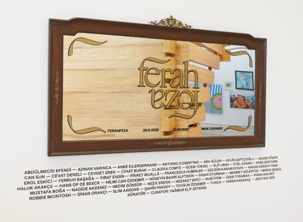 Aynanın hemen altında ise müzenin üç katına yayılan seçkinin sanatçıları, adeta bu büyük sofranın davetlileri gibi bir bir sıralanmış. Kimler yok ki Ferahfeza’da… Abdülmecid Efendi, Adnan Varınca, Anke Eilergerhard, Antonio Cosentino, Ara Güler, Aylin Zaptçıoğlu, Azade Köker, Can Sun, Cevat Dereli, Cevdet Erek, Cihat Burak, Claudia Comte, Ecem Yüksel, Elif Uras, Etel Adnan, Eren Göktürk, Erol Eskici, Ferruh Başağa, Fırat Engin, Fikret Mualla, Francesca Hummler, Gülsün Karamustafa, Hakan Gürsoytrak, Haluk Akakçe, Hans op de Beeck, Hilmi Can Özdemir, Hüseyin Bahri Alptekin, İhsan Oturmak, Mehmet Güleryüz, Merve Şendil, Mustafa Boğa, Nadide Akdeniz, Nedim Günsür, Neşe Erdok, Nezaket Ekici, Nuri İyem, Özer Toraman, Pınar Akkurt, Robbie McIntosh, Sinan Orakçı, Slim Aarons, Şahin Paksoy, Toygun Özdemir, TUNCA, Yaren Karakaş, Zeki Faik İzer…