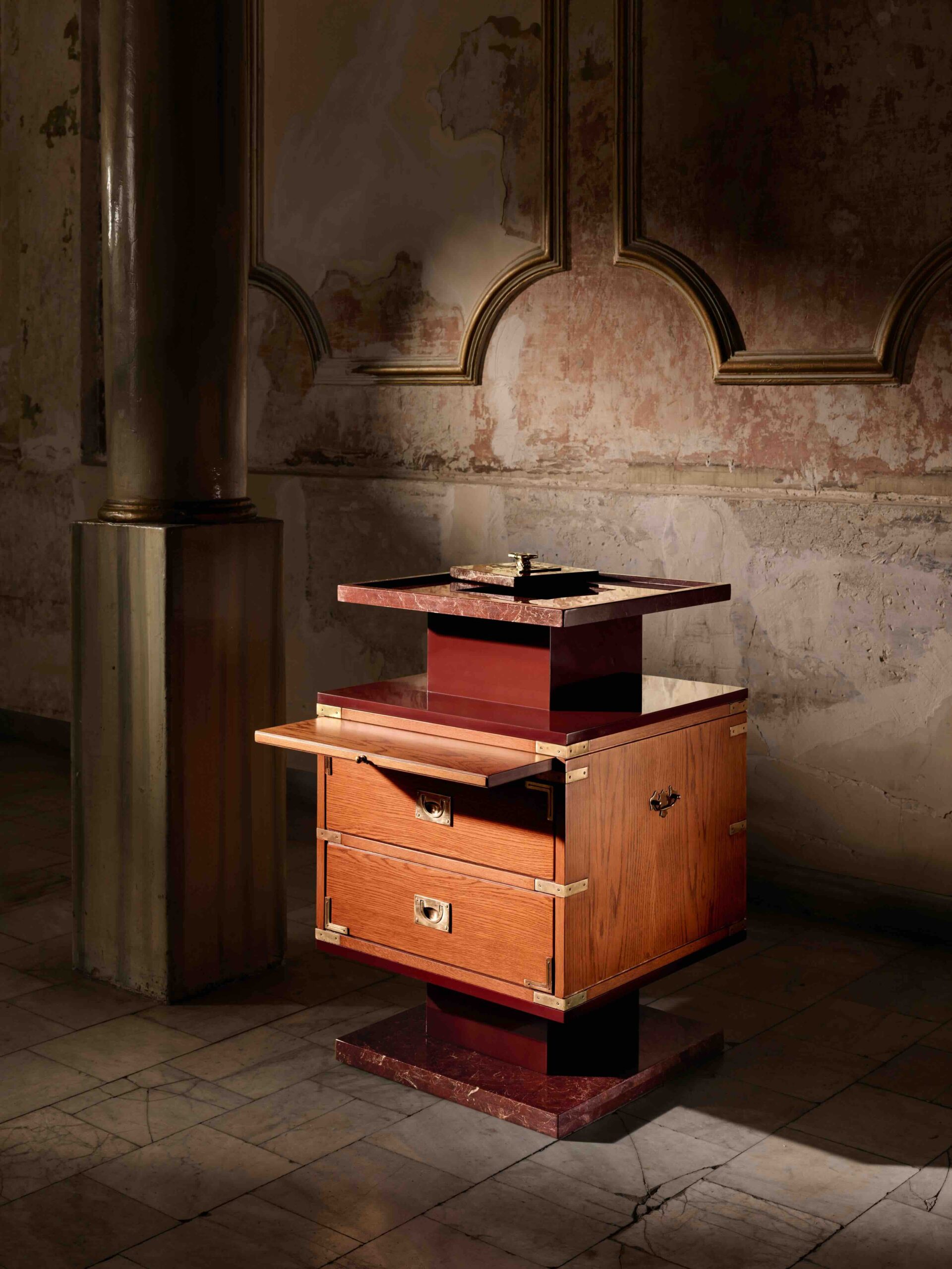 Glif’in Altered Heritage Koleksiyonu, geçmişin izlerini çağdaş bir sahneleme anlayışıyla günümüze taşıyor. Her parça, geçmişten gelen bir objenin, rafine malzeme seçkisi ve zanaatkar işbirlikleriyle yeniden ele alınmasıyla şekilleniyor ve kendi koleksiyon kültürünü oluşturuyor. Ahşap, mermer ve metal gibi malzemeler; kolektif bir üretimden geçerek, objenin geçmişine yeni katmanlar ekliyor. Bu çok katmanlı üretim süreci, kusursuz bir son üründen ziyade, izleri görünür kılan tasarım nesneleri ortaya çıkarıyor. Böylece tasarım, hafızanın, mekanın ve ortak üretim sürecinin iç içe geçtiği bir anlatıya dönüşüyor.