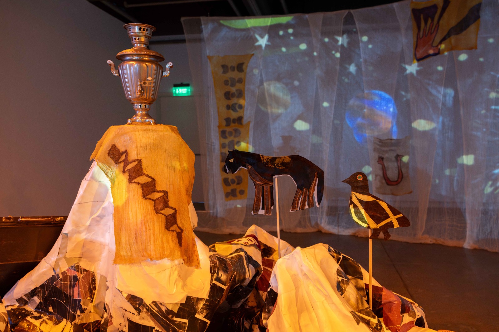 Sergi, adını dans eden bir kadın figürünü betimleyen geleneksel bir Tatar halk şarkısından alıyor. Bu başlık, savaşlar, ekonomik buhranlar, işgaller ve rejim değişiklikleri boyunca ayakta kalan bir topluluğun hafızasına ve yaşam enerjisine işaret ediyor. Zorunlu yer değiştirmeler boyunca sürdürülen üretim pratikleri, bedensel eylemler ve bir aradalık hâlleri; emek, direniş ve dayanışmanın kuşaktan kuşağa aktarılan repertuvarını görünür kılıyor. Epipe, hafızayı durağan bir kayıt alanı olarak değil, yaşayan ve dönüşen bir süreç olarak ele alıyor.