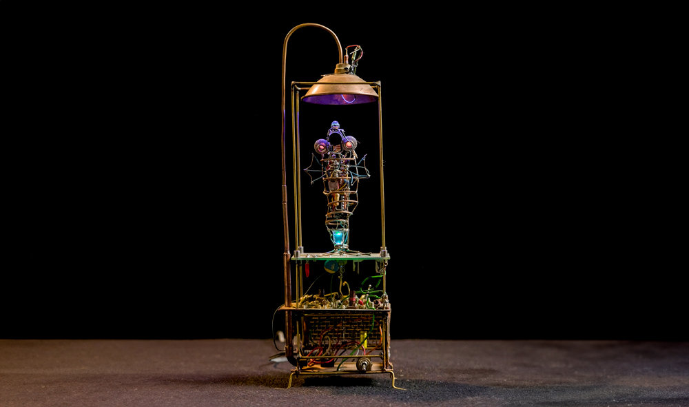 Oralardan yola çıkarak, serginin adını da “Elektro Punk Biyotop” koydum. Steampunk, siberpunk ve üst başlık olarak, Punk estetik formlara atıf yapıyor olsalar da, aslında dünyaya dair bir okuma ve buna karşı geliştirilen bir tavrı ifade ediyorlar. Bu tavır, Bünyamin’in işlerinde punk estetiğiyle ortaya çıkıyor, bu yanıyla da —aslında her şey ve her sergi gibi—politik.