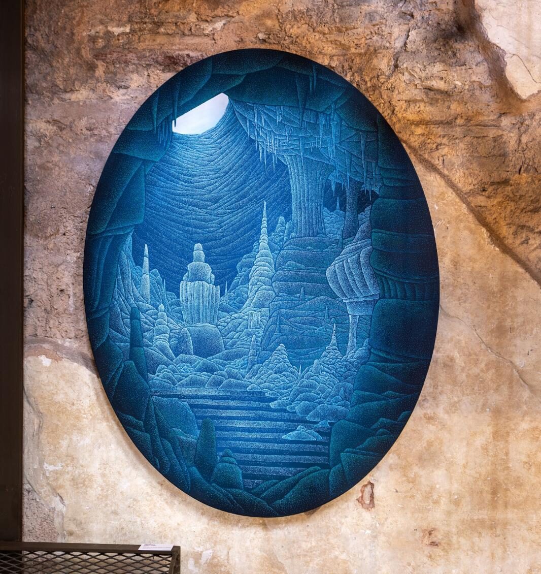 Sergiyi kurgularken mekânı “taklit edilen bir mağara”ya dönüştürmekten özellikle kaçındım; bunun yerine yapının kendi belleğiyle yeraltının hafızasını çaprazlayan bir ara yüz kurmayı amaçladım. Duvarların tarihsel katmanları ile mağaranın jeolojik katmanları, izleyicinin hem yapının hem de işlerin zamanını aynı anda hissedebileceği poetik bir alan açtı. Bu yaklaşım sayesinde mekân, sergide sessiz ama etkin bir ortak hâline gelerek işlerin ritmine ve düşünsel derinliğine eşlik etti.
