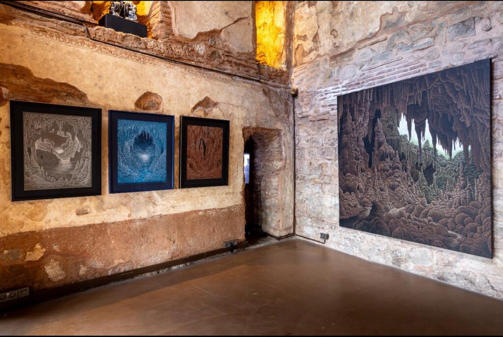 Sergiyi kurgularken mekânı “taklit edilen bir mağara”ya dönüştürmekten özellikle kaçındım; bunun yerine yapının kendi belleğiyle yeraltının hafızasını çaprazlayan bir ara yüz kurmayı amaçladım. Duvarların tarihsel katmanları ile mağaranın jeolojik katmanları, izleyicinin hem yapının hem de işlerin zamanını aynı anda hissedebileceği poetik bir alan açtı. Bu yaklaşım sayesinde mekân, sergide sessiz ama etkin bir ortak hâline gelerek işlerin ritmine ve düşünsel derinliğine eşlik etti.