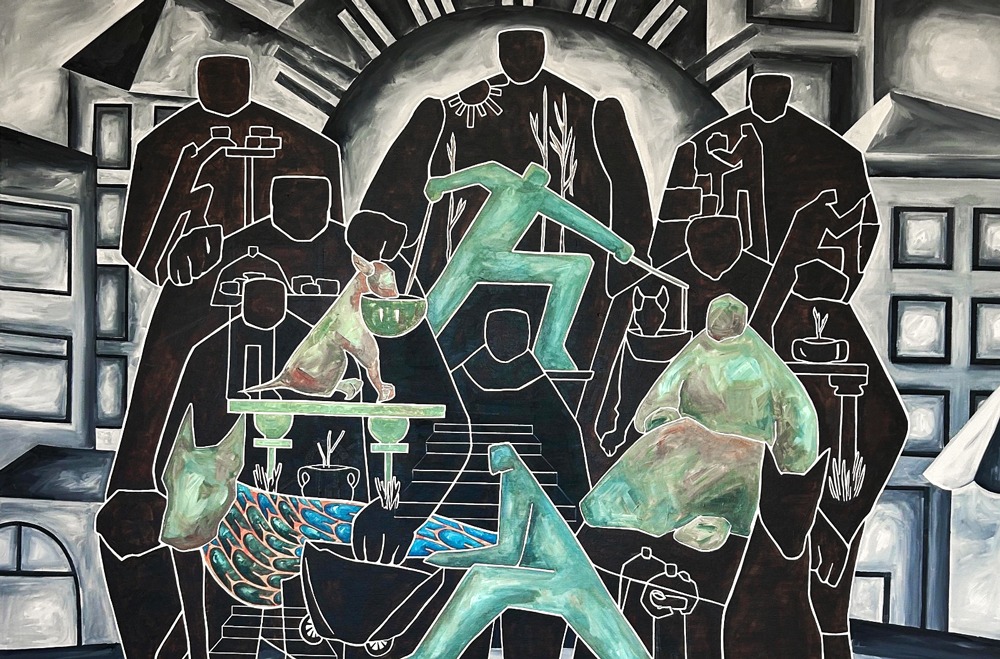 Eymen Aktel’in Yağmursuz Toprakların Şenliği sergisi, toplumsal düzen, emek ve kolektif yaşam biçimleri üzerine düşünsel bir alan açıyor. Sanatçı, insan ve hayvan figürleri aracılığıyla doğa ile toplum arasındaki geçirgen sınırları görünür kılıyor. Antik estetik, mitolojik göndermeler ve geleneksel motiflerle geçmişin ritüellerini bugünün toplumsal tahayyülleriyle buluşturan Aktel, üretim, dayanışma ve süreklilik kavramlarını merkezine alıyor.