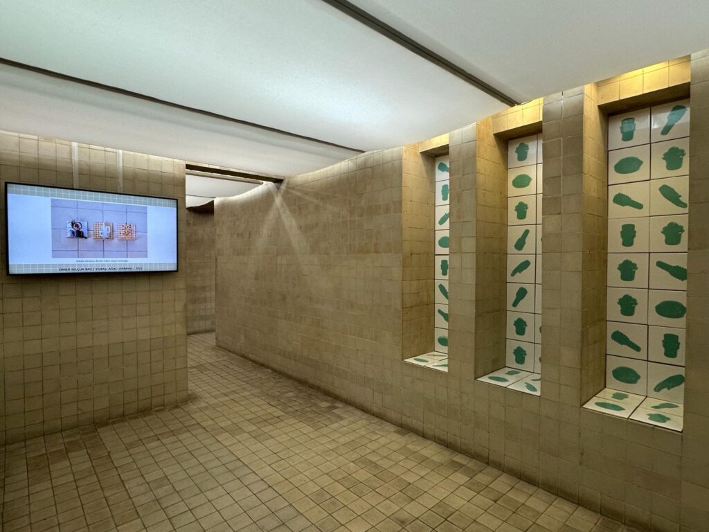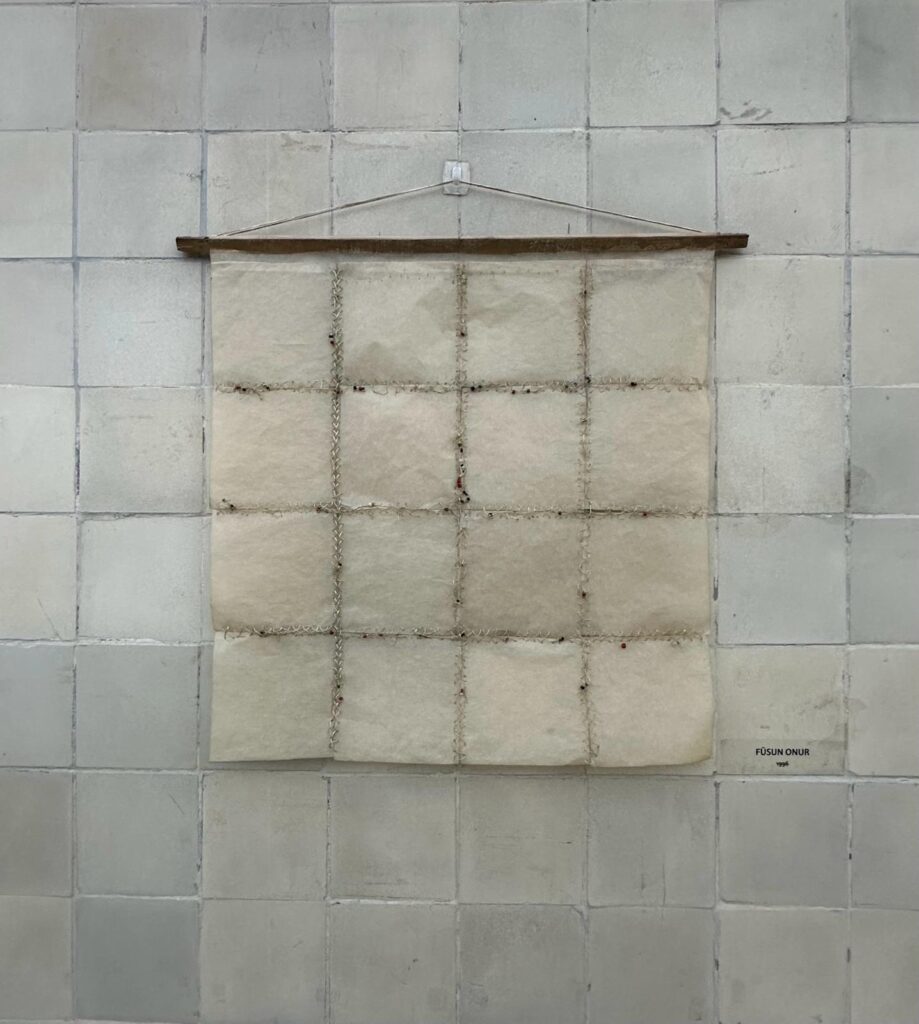“Hangi kurguyu yaparsak yapalım hepsini kapsayacak bir sergi çok geniş alanlar gerektiriyordu,” diyor Çapa. Çözüm ise mekânın kendisinde bulunuyor: “Galerinin kareleriyle etkileşim kuran sanatçılar üzerinden ilerledik. Böylece hem mekâna sadık kaldık hem de geçmişteki önemli sergilerden isimlere yer verebildik.”