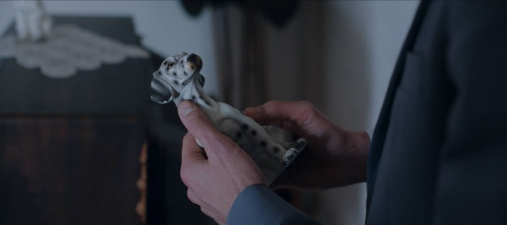 Köpek biblo, Füsunların evinde televizyonun üzerinde dururken, ait olduğu düzenin sessizliğini taşır. Evdeki herkesin gözünün alıştığı, yokluğu fark edilmeyen bir varlık gibidir. Ta ki Kemal onu eline alıp kendi evine götürene kadar. Nesnenin hafızası tam da burada uyanır: Yerinden oynatıldığı anda. Çünkü Masumiyet Müzesi’nde eşyalar, alındıkları anı değil, eksildikleri anı hatırlar.