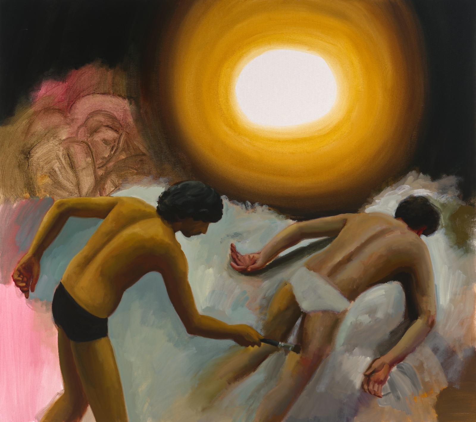 Murat Önen, İki adam ve sarı boşluk, Tuval üzerine yağlı boya 160 x 180 cm, 2025