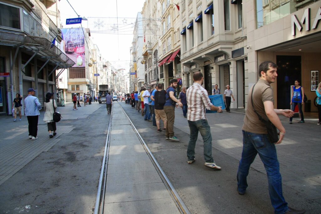 Haziran 2014’te Robinson Crusoe 389, İstiklal Caddesi’ndeki dükkânından Salt Beyoğlu’na “elden ele” taşınırken. Fotoğraf: Can Kortun
