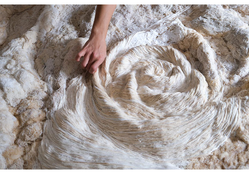 Galeri Bosfor, Betül Özkan’ın ip ve yün gibi Anadolu kültürünün kadim malzemelerinden yola çıkan Sicimin İzinde sergisini izleyiciyle buluşturuyor. Sergi, çözülme ve yeniden bağlanma süreçleri üzerinden kişisel ve kolektif hafızayı, döngüsel ve ritüelistik bir üretim diliyle görünür kılıyor. Özkan’ın yüzeyde kurduğu akışkan ve dokunsal anlatı, beden, coğrafya ve bellek arasındaki çok katmanlı ilişkileri yeniden düşünmeye davet ediyor.