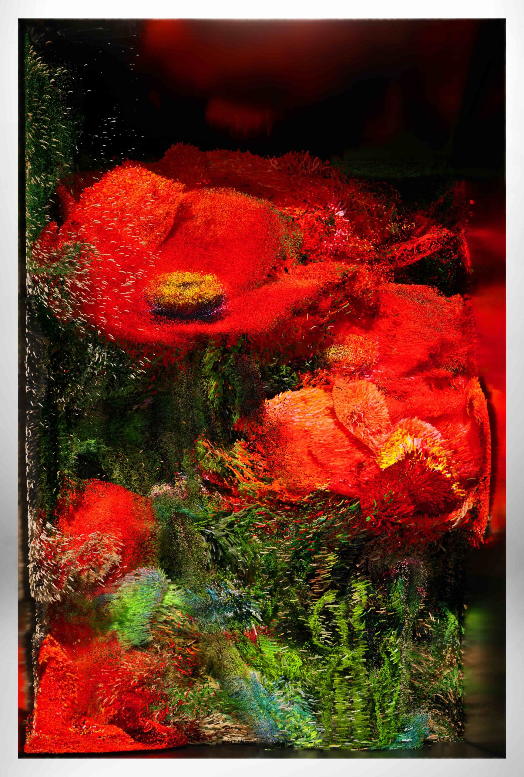 Türkiye-Flora, 10 dakikalık bir yapay zeka heykeli olarak tasarlandı. Refik Anadol’un geliştirdiği veri tabanı ve üretken yapay zekâ modeliyle ortaya çıkan eser, 33 milli parkta toplanan çiçek verileriyle eğitilen algoritmayı sanatçının vizyonuyla birleştirerek Türkiye’nin endemik bitkilerini görselleştiriyor.