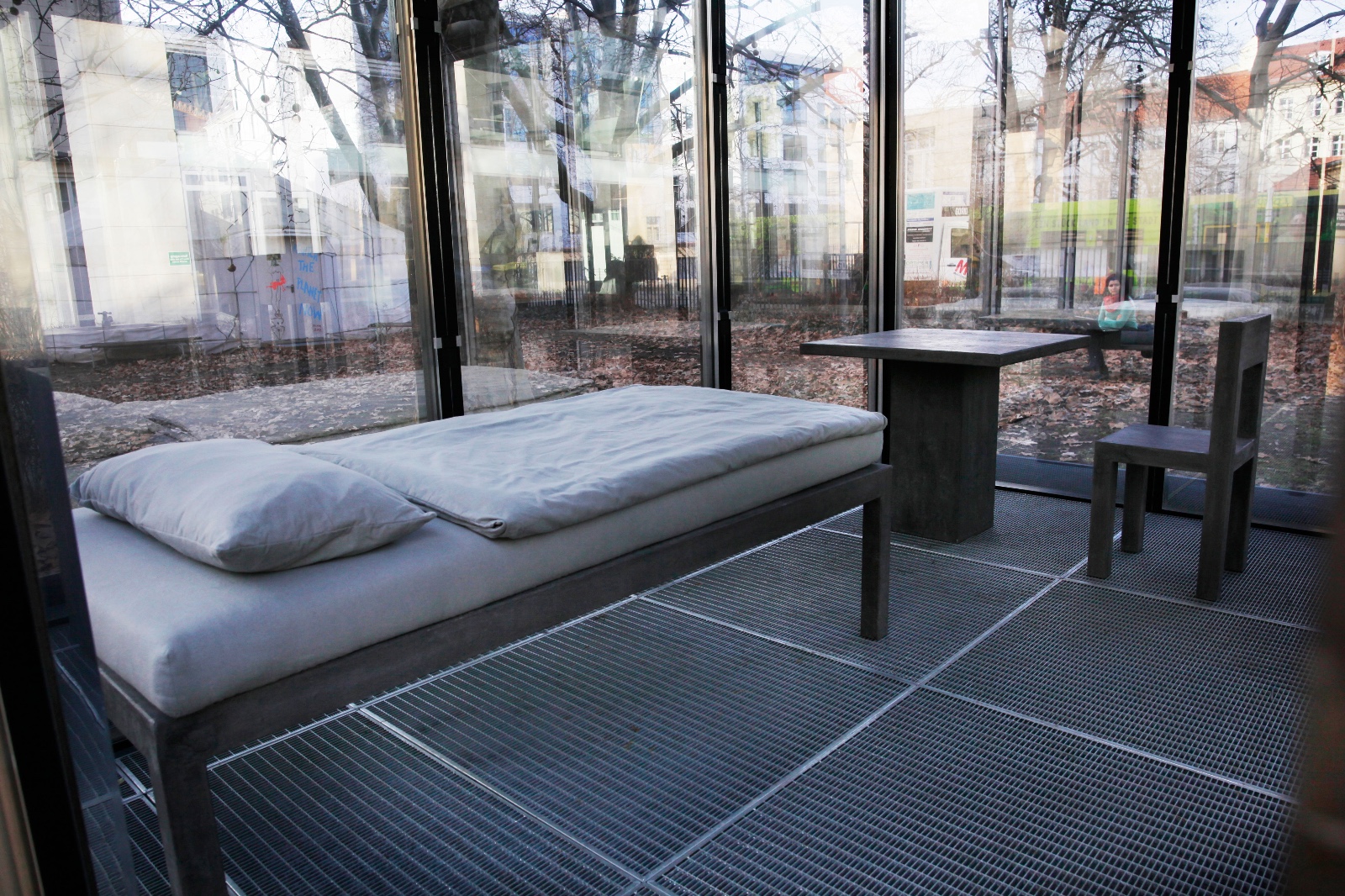 Türkiye’de demokrasi ve ifade özgürlüğü sembolüne dönüşen Silivri Cezaevi hücresinin benzeri olan enstalasyon, Ekrem İmamoğlu’nun Silivri’de tutuklu yargılanmaya başlanmasın ardından, geçtiğimiz günlerde Rotes Rathaus önünde sergilenmeye başlandı.